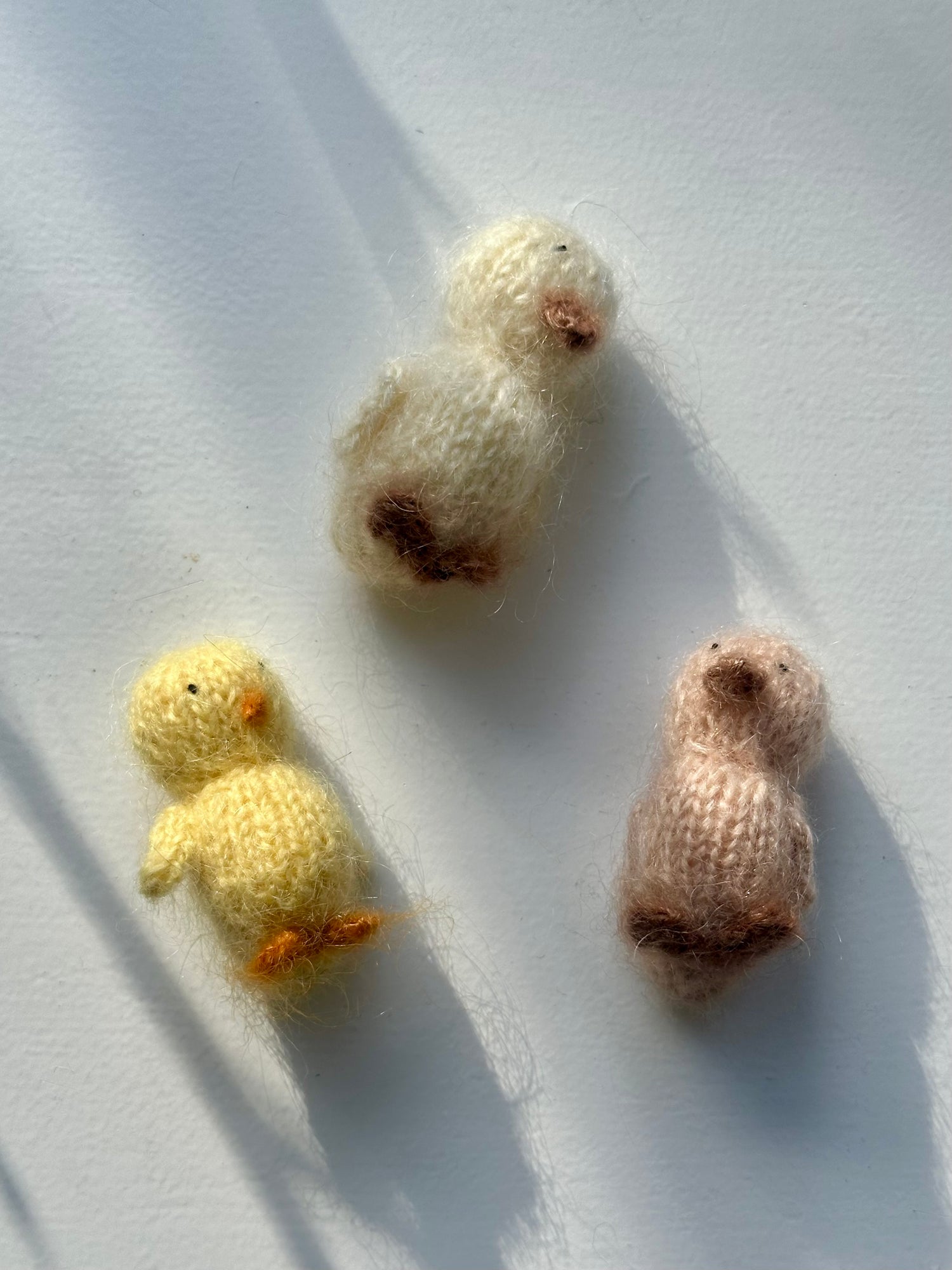 Med foråret kommer de nyudklækkede kylinger, ællinger og gæslinger. Her er de strikket i blød mohair i fine farver. Marker årstidens skiften og alt det nye, spirende liv med de her små, søde dundyr.