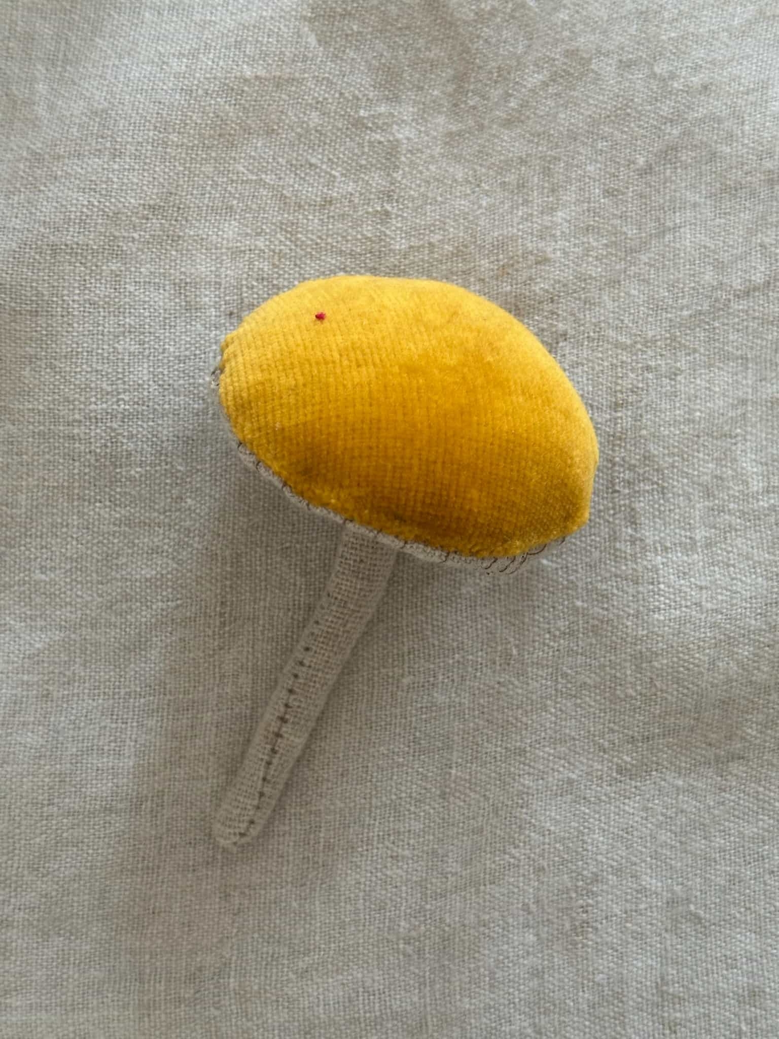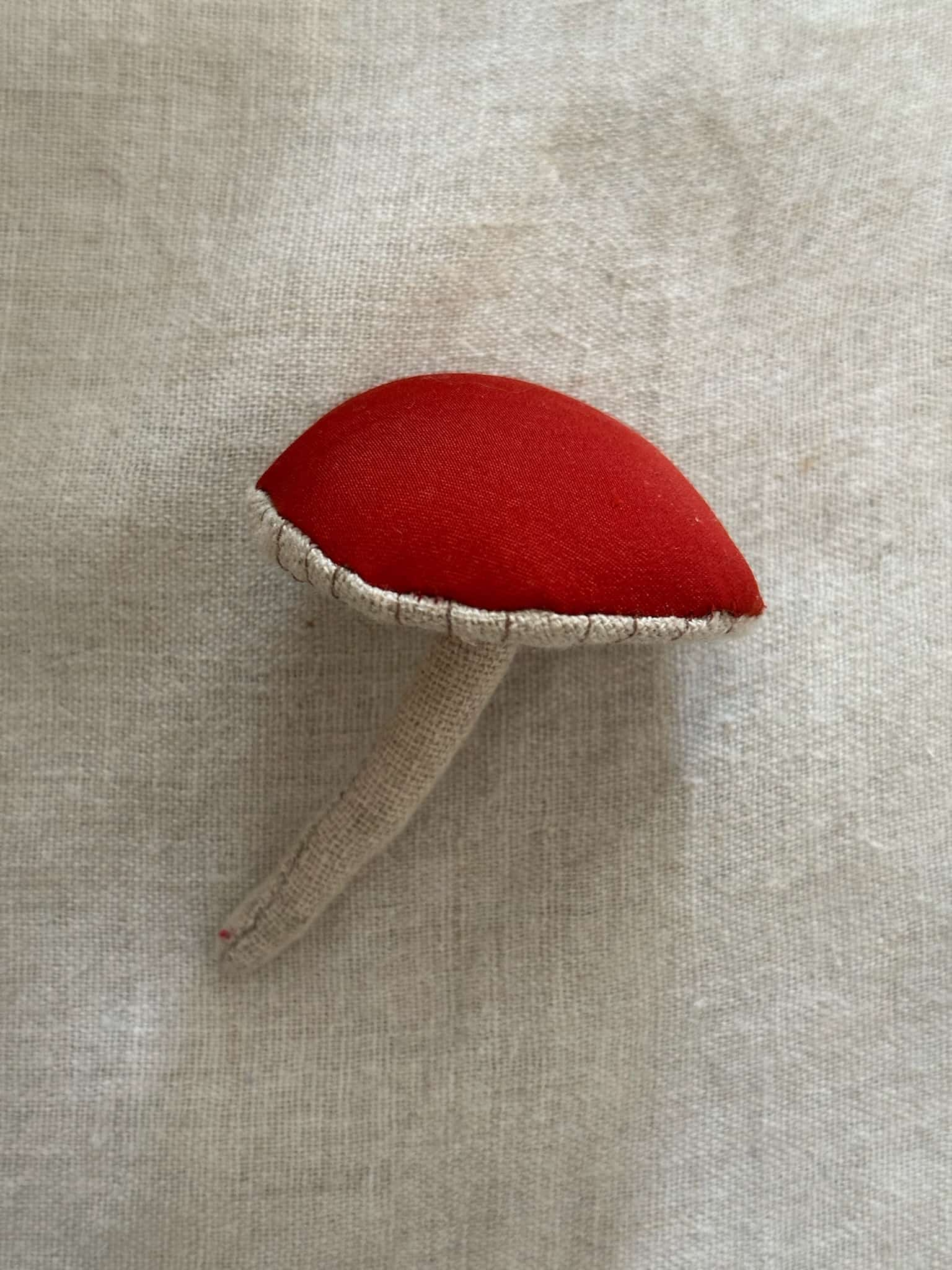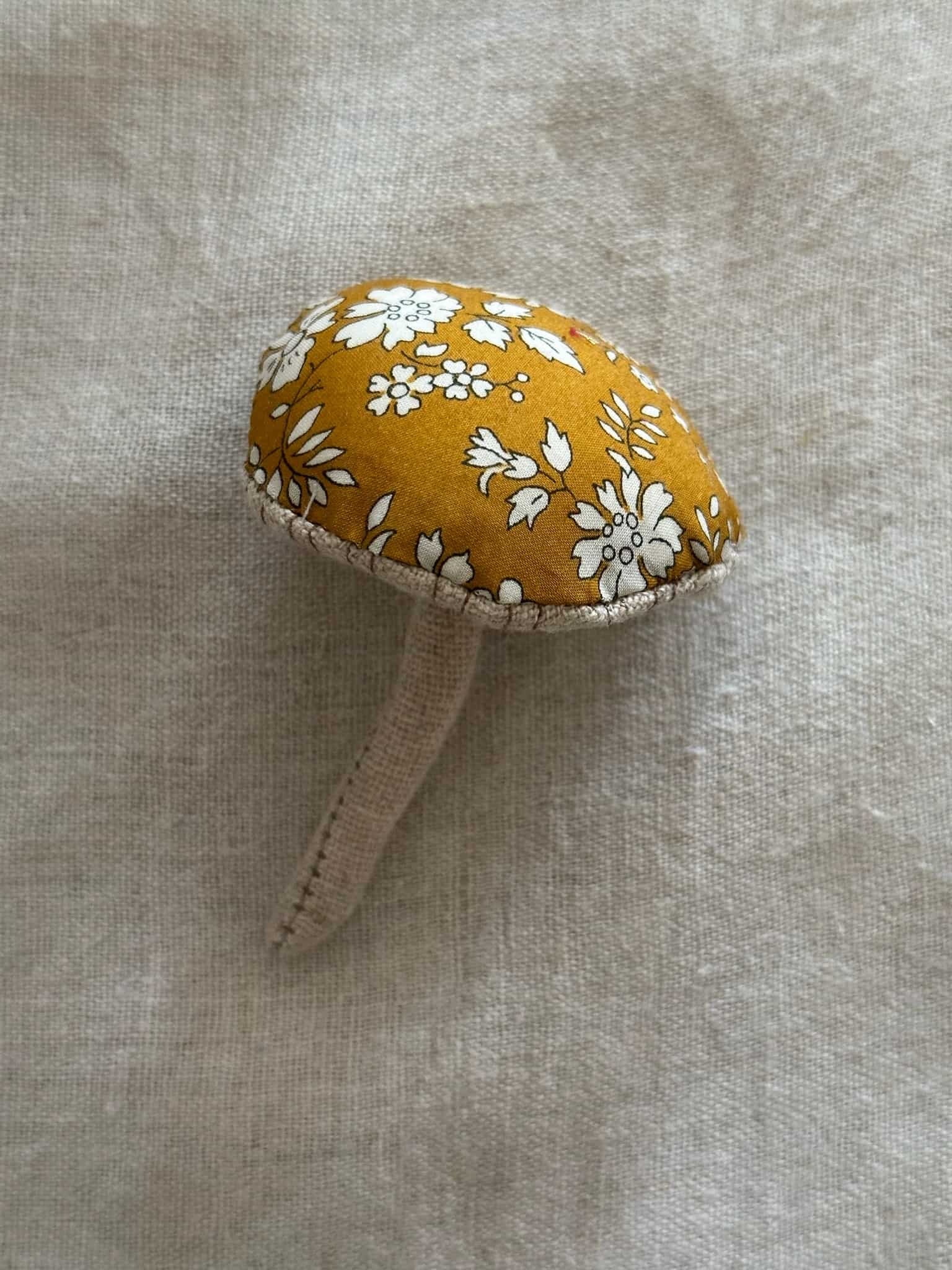 Håndsyede svampe med guldsnor – perfekte til ophæng, dekoration og efterårshygge.