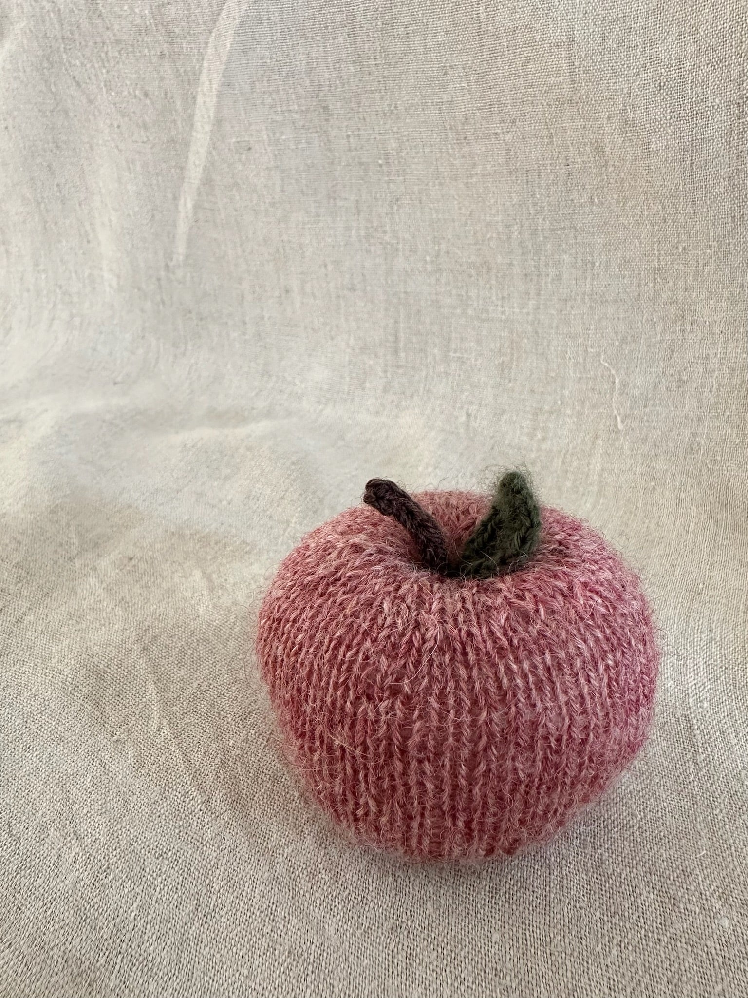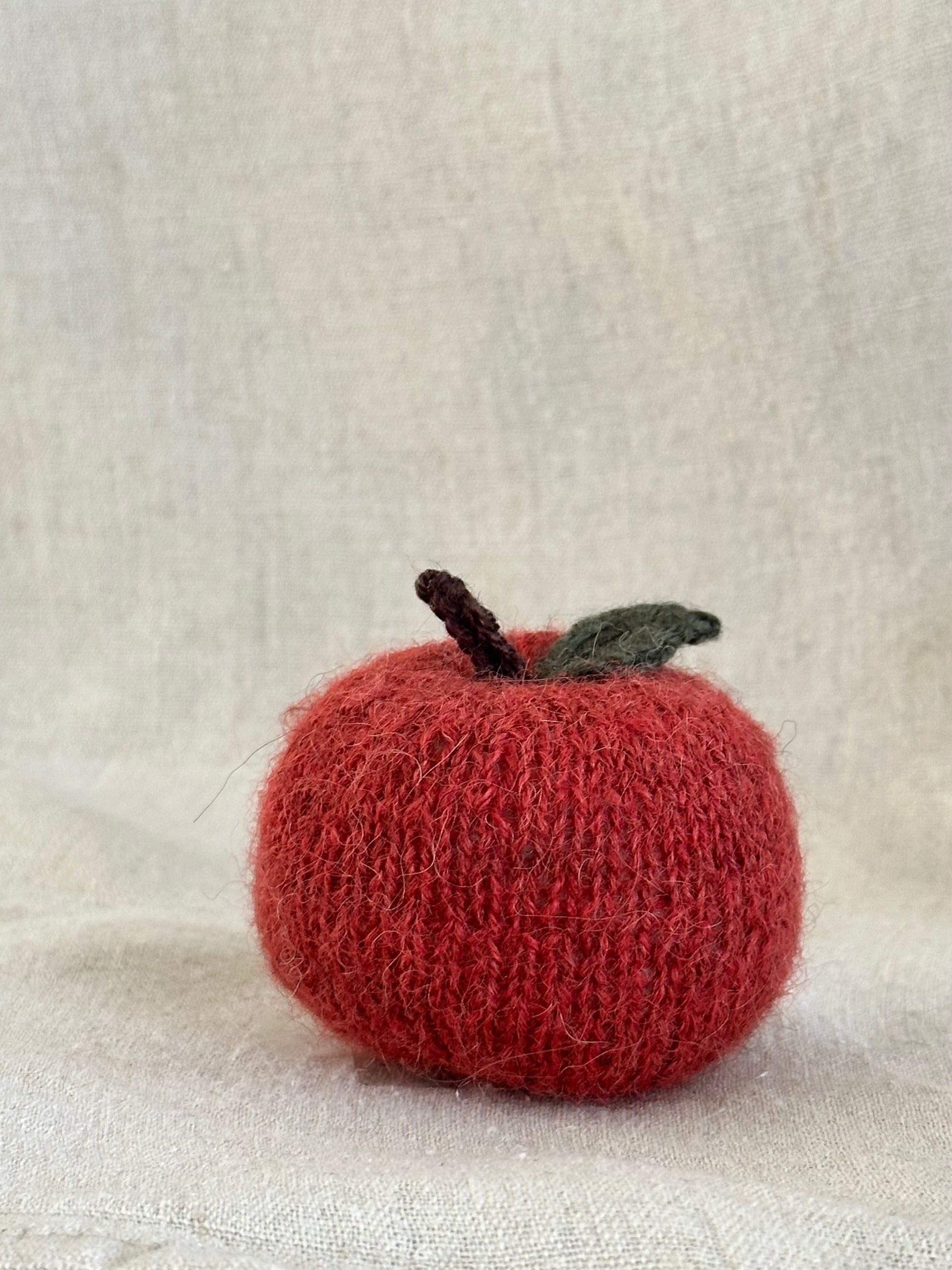 Skab hygge i hjemmet med de fine håndstrikkede æbler i merinould og alpaca. Æblerne er perfekte til at hænge i vinduet, på en gren, til at pynte i reolen eller som en fin detalje på et smukt dækket bord.