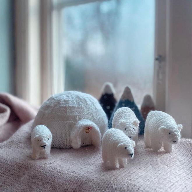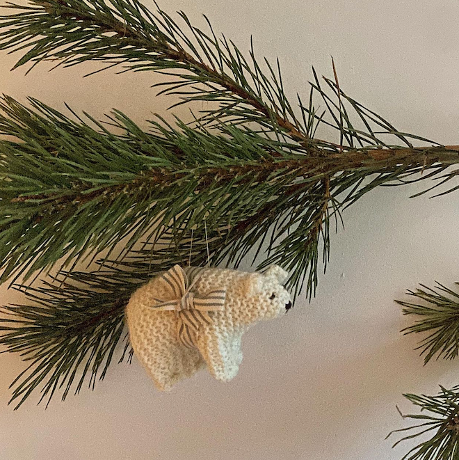 Håndstrikket isbjørnemor eller isbjørnefar til pynt