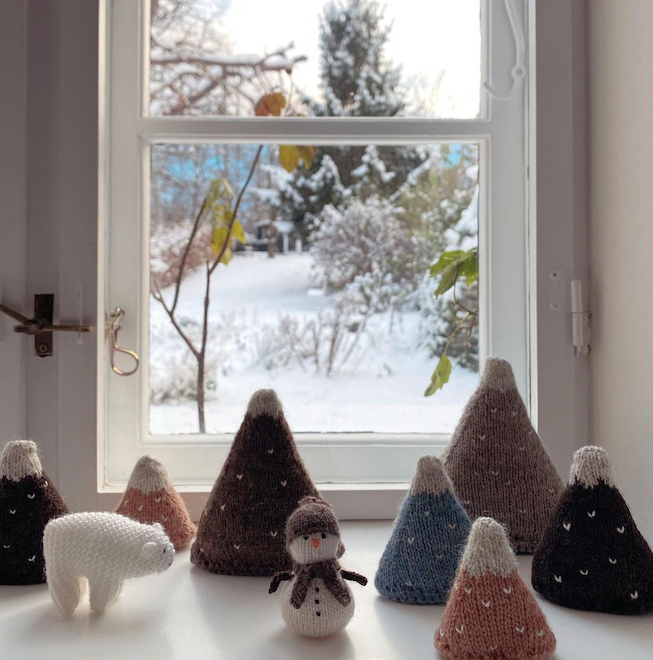 Isbjørnen er håndstrikket i kridhvid uld på de helt små strikkepinde. Den er let nok til at hænge på en gren, men kan også stå og eventuelt indgå i dit vinterlandskab.