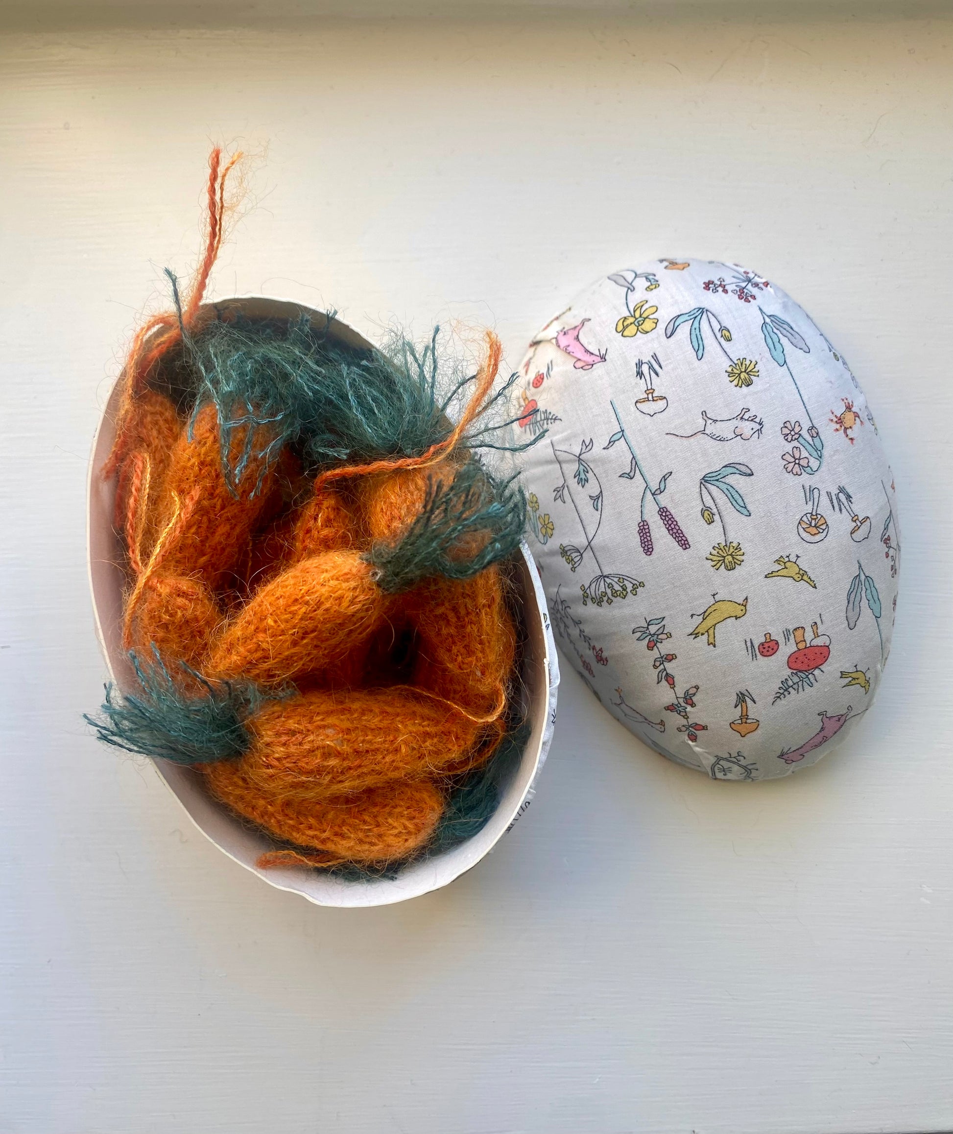 Påskeæg beklædt med stof, skovens dyr
